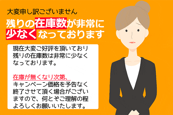問い合わせたら「まもなく在庫切れ」と言われたので、早速注文したいと思います!なんか一度完売したら3ヶ月待ちになるらしくて、もう今完売直前みたいです…。これ逃すと次までかなり待つらしい…